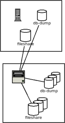Säkerhetskopieringsservern är placerad på annat håll än driftservern och kopieras till ytterligare lokationer för att skapa redundans.